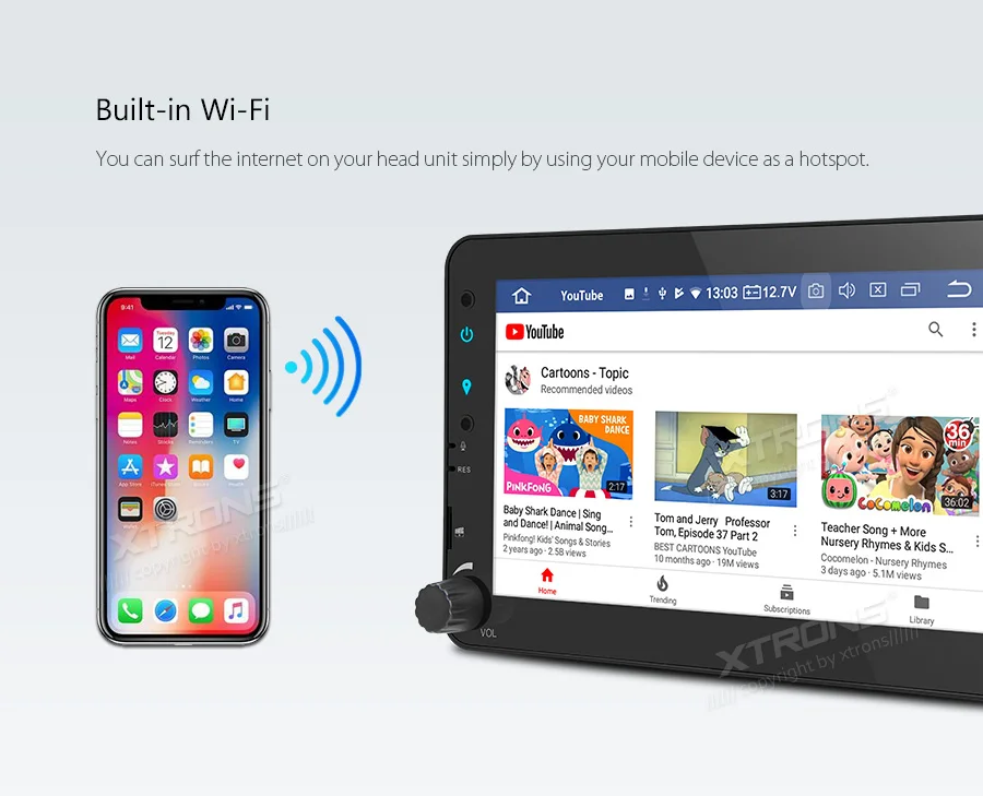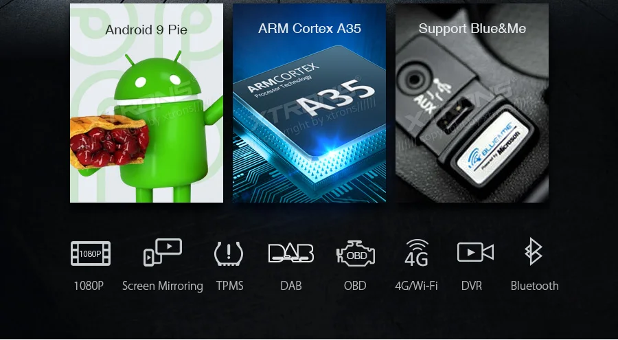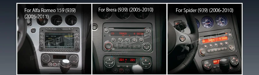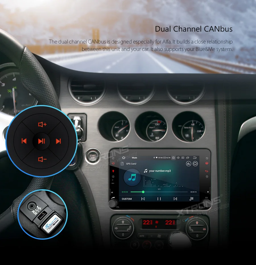 *Android 9 Pie Operation System *ARM Cortex A35 *16GB ROM, 2GB DDR3 RAM, 4 Core Processor *7 inch HD Multi-touch Screen, 1024*600 Pixel Screen Resolution *No DVD function *Support Full HD 1080P Video *Screen Mirroring Function *Tire Pressure Monitoring(TPMS) is available *Optional DAB Function *Optional OBD Function *Support 3G/4G/Wi-Fi Connection *Support online/offline navigation *Support Camera input and DVR input *Built-in Bluetooth, support Bluetooth 5.0 for handsfree calls and music *Dual Channel CANBUS *Built-in SD Slot and USB Port *XTRONS UI, Colorized Button Light *Various Sound Expert,Various Wallpapers,Battery Voltage Display *Built-in RDS, Radio Tuner *Optional Accessories to perfect your user Experience •Applicable Models & Years For Alfa Romeo 159 (939) (2005-2011), Brera (939) (2005-2010), Spider (939) (2006-2010) Face Panel: 193*116mm Although we have made every effort to ensure this unit will be compatible with the listed vehicles, please check the year, dimensions and shape of the center console of your vehicles before purchasing. IMPORTANT NOTE: 1. This unit can NOT support the cars with original navigation, and if you want to use the amplified speakers of car, some modifications are needed. Built-in Wi-Fi You can surf the internet on your head unit simply by using your mobile device as a hotspot. Dual Channel CANBus The dual channel CANbus is designed especially for Alfa Romeo. It builds a close relationship between this unit and your car. It also supports your Blue & Me system.